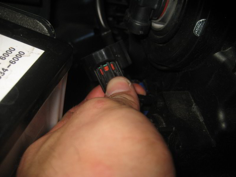 • Push the electrical connector release tab and slide down the power plug.