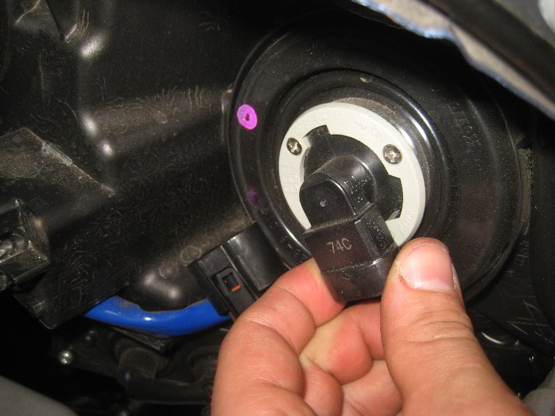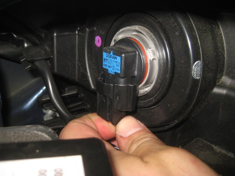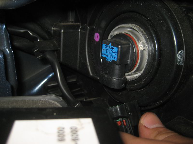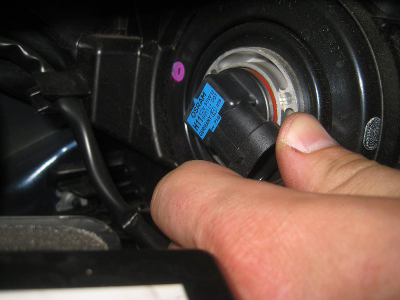 • Insert the new H11 low beam bulb and rotate it clockwise to secure it.